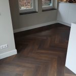 Afgelopen week hebben we weer een mooie vloer gelegd. Op bestaand marmoleum hebben wij een mooie donkere visgraat PVC vloer gelegd. Eerst hebben we de marmoleum vloer ontvet, hierop dubbelzijdig tape van 1 mtr breed geplakt, waarop we de PVC vloer hebben geplaatst.
